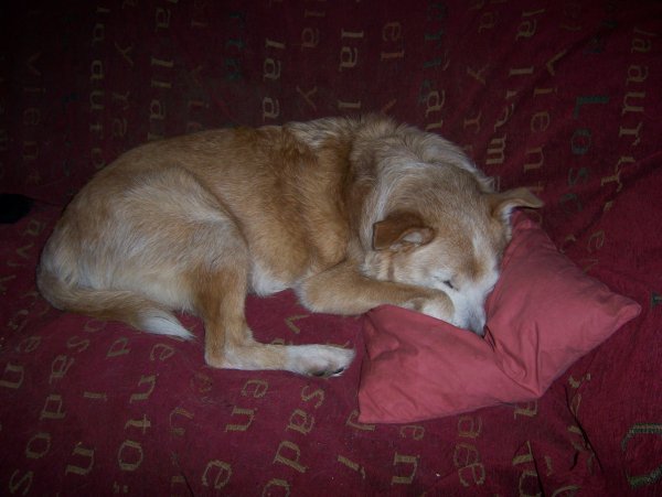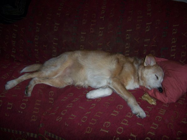 sein Sofa flüchtet und manchmal mit den Hinterbeinen nicht hoch kommt,