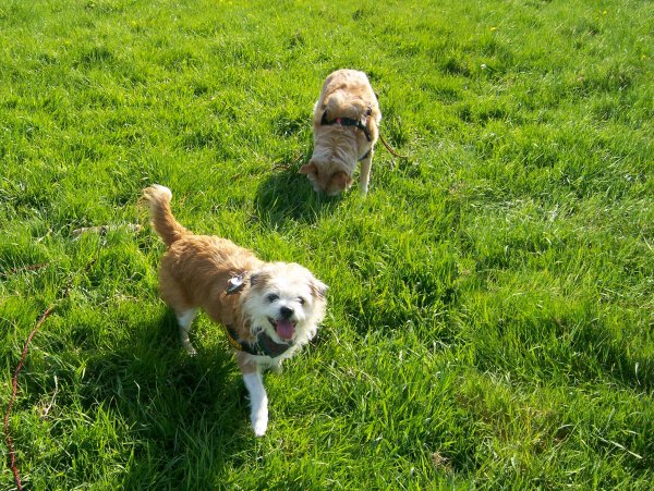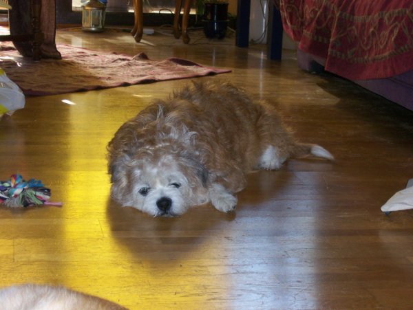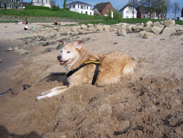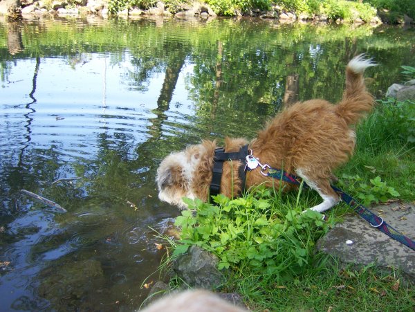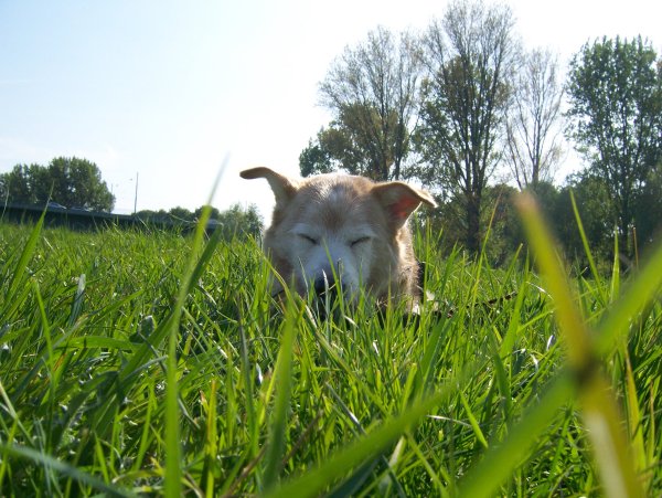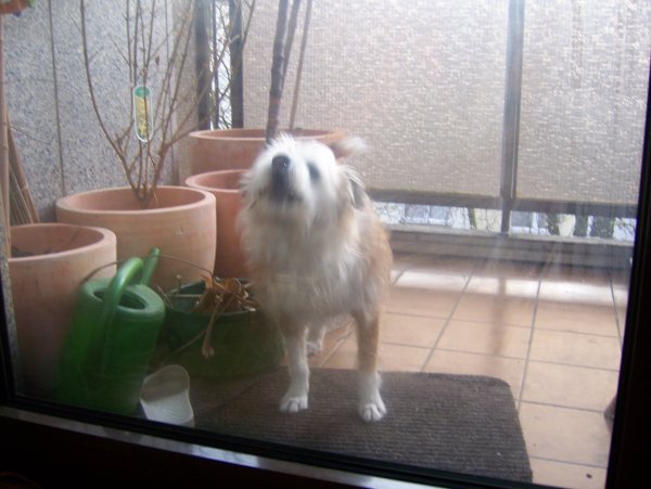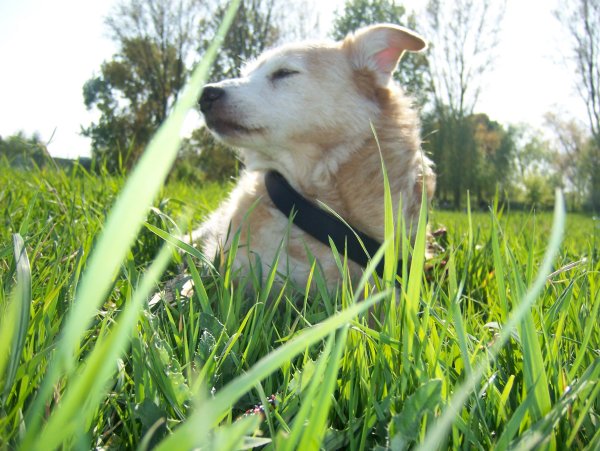 Morgen werde ich geschoren - seufz - ich mag ja eigentlich meine Löckchen, aber irgendwie ist mir das alles viel zu warm. Heute war ein kühler Wind, aber in der Sonne war es warm und mein Rückenfell fing wieder an zu jucken.