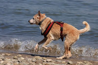 Heute war ein toller Tag, obwohl Frauchen mich heute morgen erst einmal zum Tierrarzt geschleppt hat. Nicht schon wieder!! Aber meine Leute machen sich Sorgen wegen meinen schwachen Hinterläufen. Seit meinen OPs habe ich Muskeln abgebaut und ich rutsche hinten immer weg. Kann man nichts machen, außer Massagen und ganz viel Bewegung ... und die habe ich heute bekommen. Ich konnt' einfach nicht anders, obwohl Frauchen mich immer ein wenig stoppen wollte. Bin wieder rumgesaust wie ein junger Gott. Rein ins Wasser, geschwommen (mit Hilfe von Frauchen und Herrchen) dann über den Strand gedüst und mal Herrchen und dann mal wieder Frauchen zum Spielen aufgefordert. Hatten wir alle einen Spaß. Bilder kommen noch ... Herrchen muss noch umwandeln ... was immer das auch bedeuten mag :P