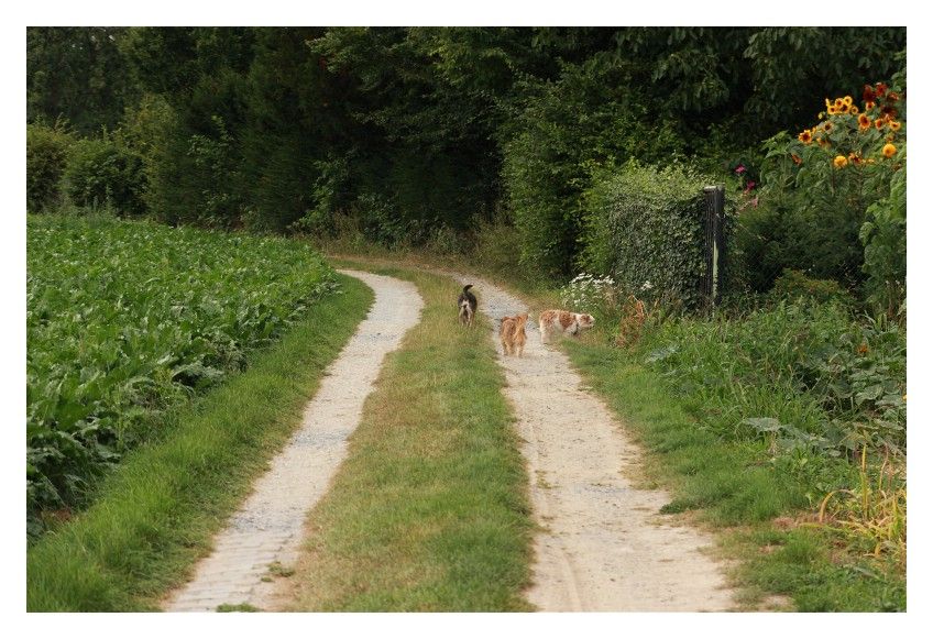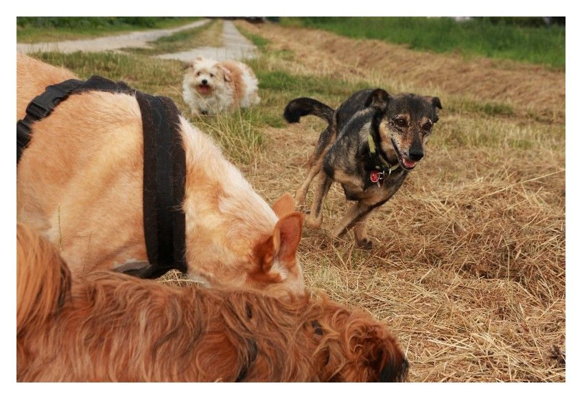 Heute gibt es wieder Fotos vom Feld. Kam doch tatsächlich so ein brauner Labby an und Sammy hat ihm Hallo gesagt, die kann das viel besser als ich oder Lulu, Mama meint, wir pöbeln immer rum. Tun wir nicht ... oder vielleicht ein bisschen. Ich habe ja immer Angst, dass so ein Hund (besonders wenn er dunkel ist) mit meine Mama weg nimmt oder mir was tut. Ich bin doch eigentlich ein Panikhündchen. Mama nennt das aber nicht so, sie nennt mich größenwahnsinnig. Pfft!