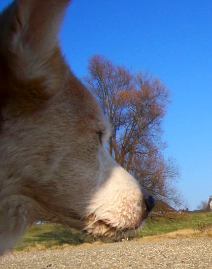 Wenigstens war es heute nicht mehr so kalt, wie gestern. Wir waren zwar am Rhein, aber es war uns allen zu kalt und ich war froh, wieder im Auto zu sein. Und heute habe ich mich einfach eingekuschelt. War zwar ein paarmal draußen und habe sogar gebadet, aber einfach nur zu dösen und zu kuscheln ist für so einen alten Herrn wie mich das allergrößte. Ausserdem habe ich für Herrchen das Fotomodell gegeben. Seht ihr hier: