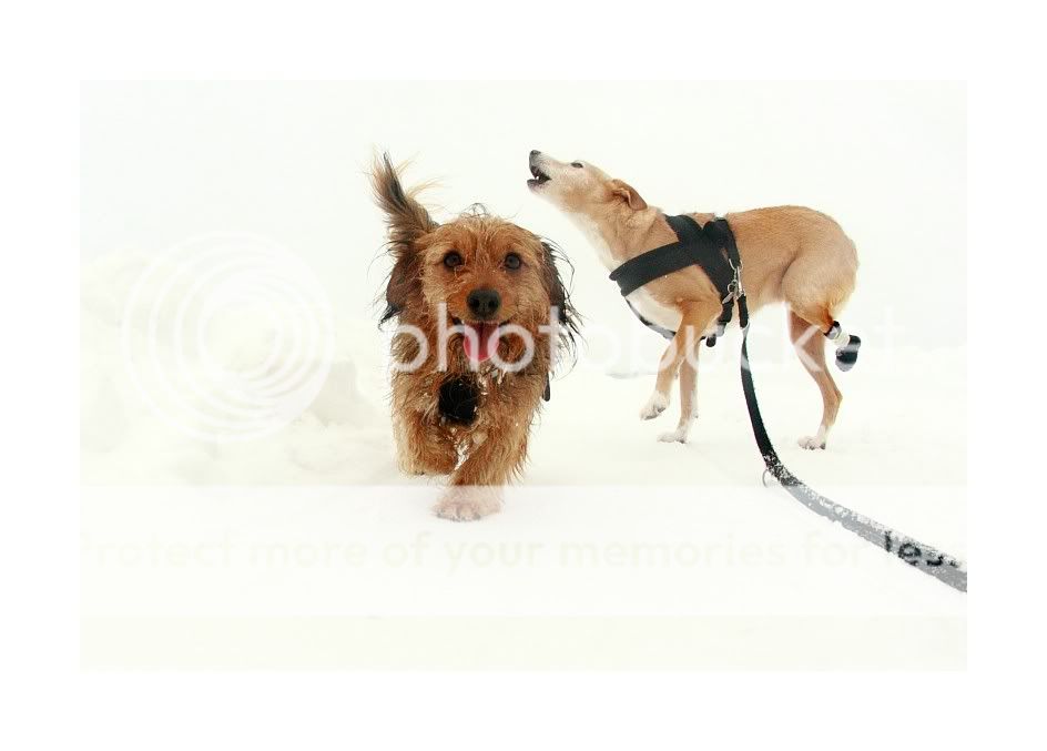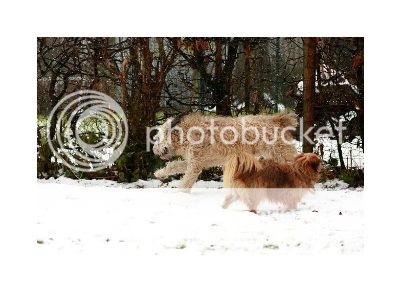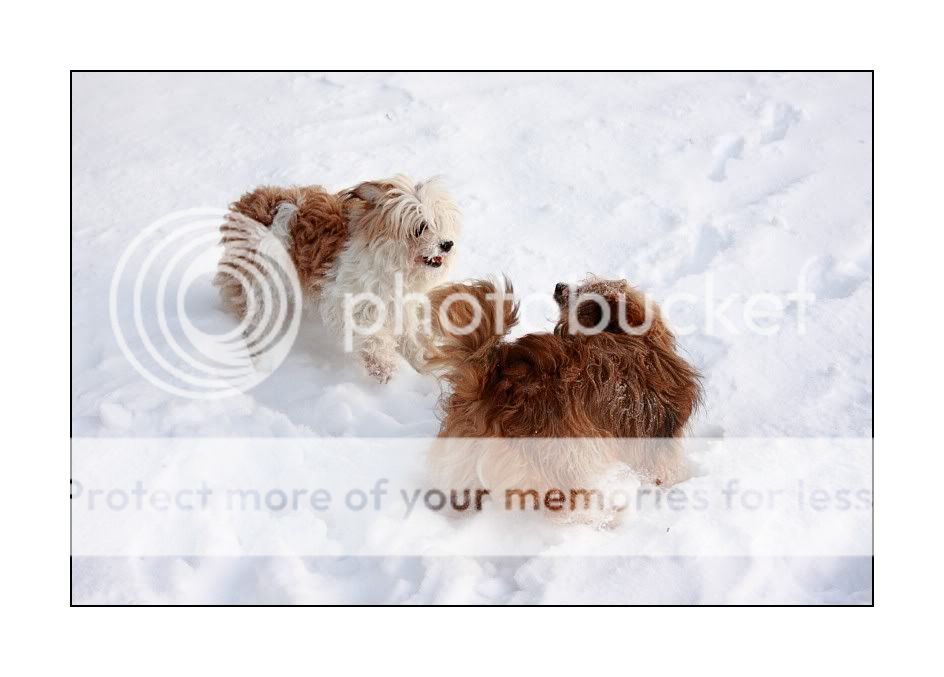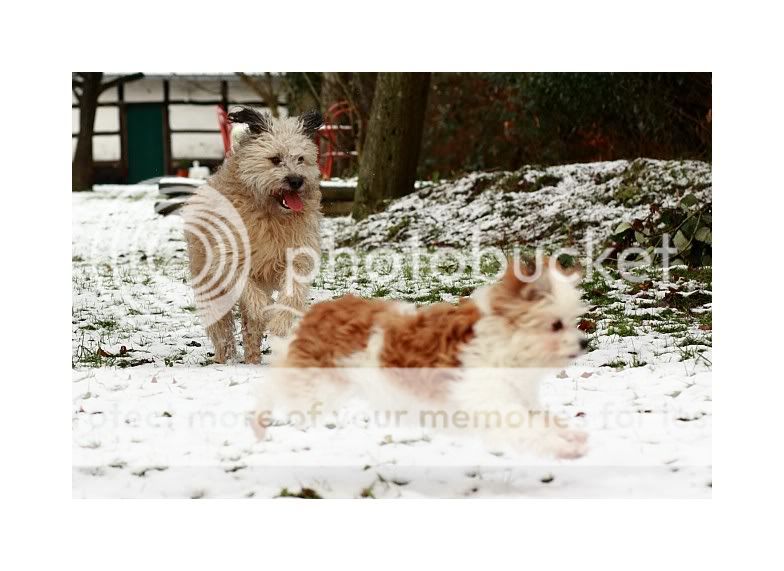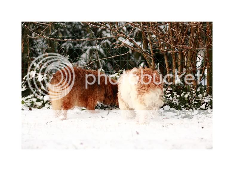 Schnee, Schnee, SCHNEEEEEEEEEEEEEEEEEEEEE!!!! Heute hat Careto Benni durch den Garten gejagt. Da sieht benni mal wie nervig das ist, wenn er das immer tut. Jedenfalls war er danach erst mal platt und alle, und ich habe mich zu Careto gekuschelt und wir sind von Mama gekrault worden. Schön! Achso .. Benni ist zu Gast. Sein Frauchen muss ins Krankenhaus und so macht Benni bei uns Urlaub.