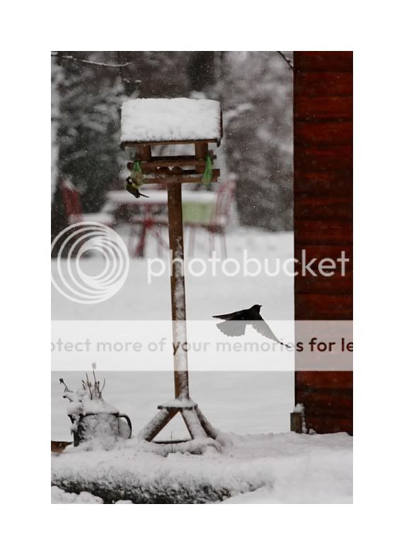 ist der Schnee. Wir geben den Vögelchen jetzt immer Futter ... das