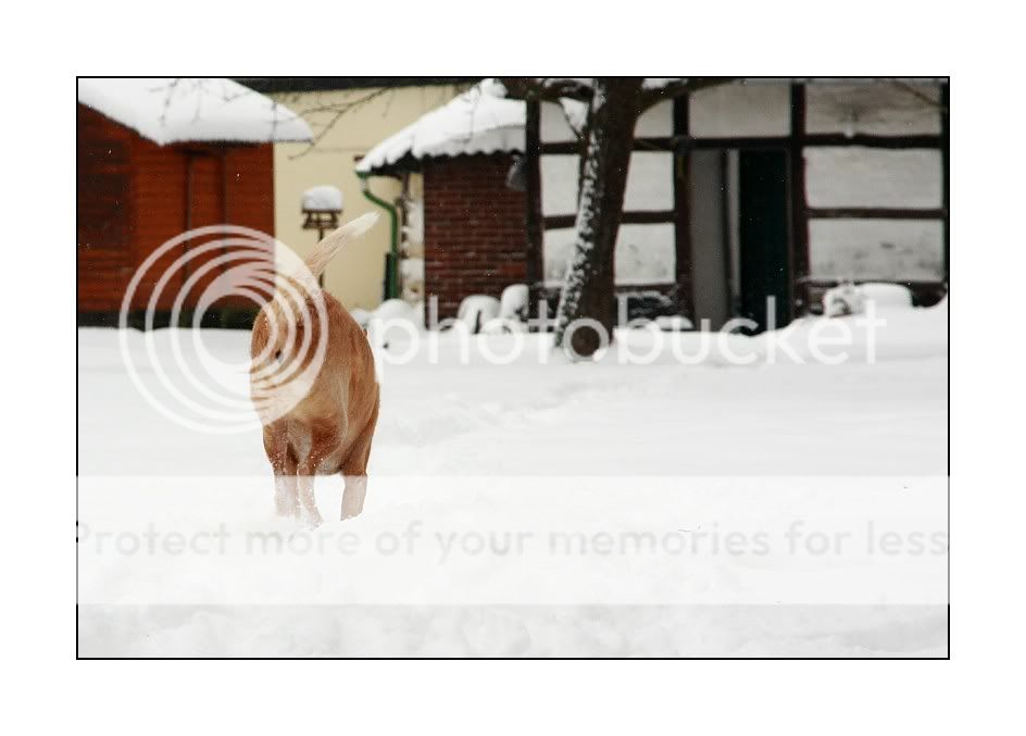 Heute waren wir wieder in Tüschenbroich und sind durch den Schnee gestapft. Lulu und ich durften ganz frei laufen, aber Careto und Benni durften das nicht. Ätsch! Careto wäre auch ein paar Mal im Gebüsch verschwunden. HIHIHIHI! Benni wird heute abend wieder abgeholt. Zum Glück, seine Hibbeligkeit ging mir nämlich auf die Nerven und ich habe mich immer ganz weit abseits gelegt, der hat meine Mama ja auch immer belegt, da hatte sie gar keine Zeit für mich ... menno.
