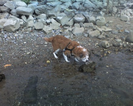 Hier bin ich nur bis zu den Vorderpfötchen im Rhein ... aber Mama ruft ...
