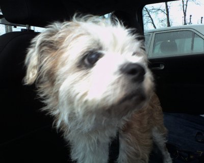 Ich in unserem Auto - da hat mein Herrchen auf mich aufgepasst, während Frauchen einkaufen war.