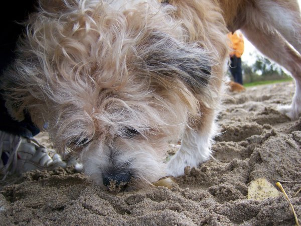 War aber heute auch ein schöner Tag. Ich habe lange geschlafen und mit Mama und Papa gekuschelt, dann ist die Mama aufgestanden und ich habe ihr beim Saubermachen geholfen. Jau! Habe den Wischmob gejagt, fand Mama gar nicht lustig und da bin ich dann wieder zu Papa gegangen, der hat ja noch geschlafen. Uuuuiiiii, Oma und Opa Köln sind da!!! Habe natürlich wieder Streicheleinheiten OHNE ENDE bekommen. Cenour hat nur seinen Kauknochen bewacht und mit Mama gekuschelt, der Doofie! Hihihihi! Heute Nachmittag waren wir alle am Rhein. Schön war das, denn wir haben mit dem Ball gespielt - leider quietscht der nicht mehr. PÖH! Und ich habe mich bei Mama untergestellt, als es kälter wurde. Bin wie eine junge Welpin hinter Papa her und habe auch Cenour gejagt. Cenour hat dann einen Stock gefunden, und da hat Mama mit ihm den Strand gewischt. Hihihihi! Er lag da und wollte einfach nicht los lassen. Dooofie!!! Ich mag das, wenn wir so viel toben können, so ohne Leine. Ich lauf' ja nicht weg und bin immer nah bei Mama und Papa. Aber schön ist das trotzdem. Dann weht' der Wind um meine Nase und ich schnüffele gaaanz tief durch. Was ich ein wenig doof finde ist, dass der Sand dann immer zwischen meinen Zehen ist. Seufz! Und dann weiss ich, dass ich in die Badewanne muss. Und wirklich. Als wir zuhause waren, hob Papa mich auch schon hoch und ich flog zum Badezimmer. Och nö! Wasser ist wie SÄURE!!! Und Cenour stand wieder unter dem Wasserhahn und machte sein Om. Der ist doch nicht normal, dass der Wasser mag. Zum Glück hat Mama mich schnell gebadet. Jetzt bin ich wieder flaufelig und habe keinen Sand mehr zwischen den Zehen. Während Mama noch Cenour gebadet hat, da habe ich mich gaaaanz heimlich an ihre Einkaufstüte heran gesclichen und hab' mir ein Greenie gemopst. Hihihihihi!